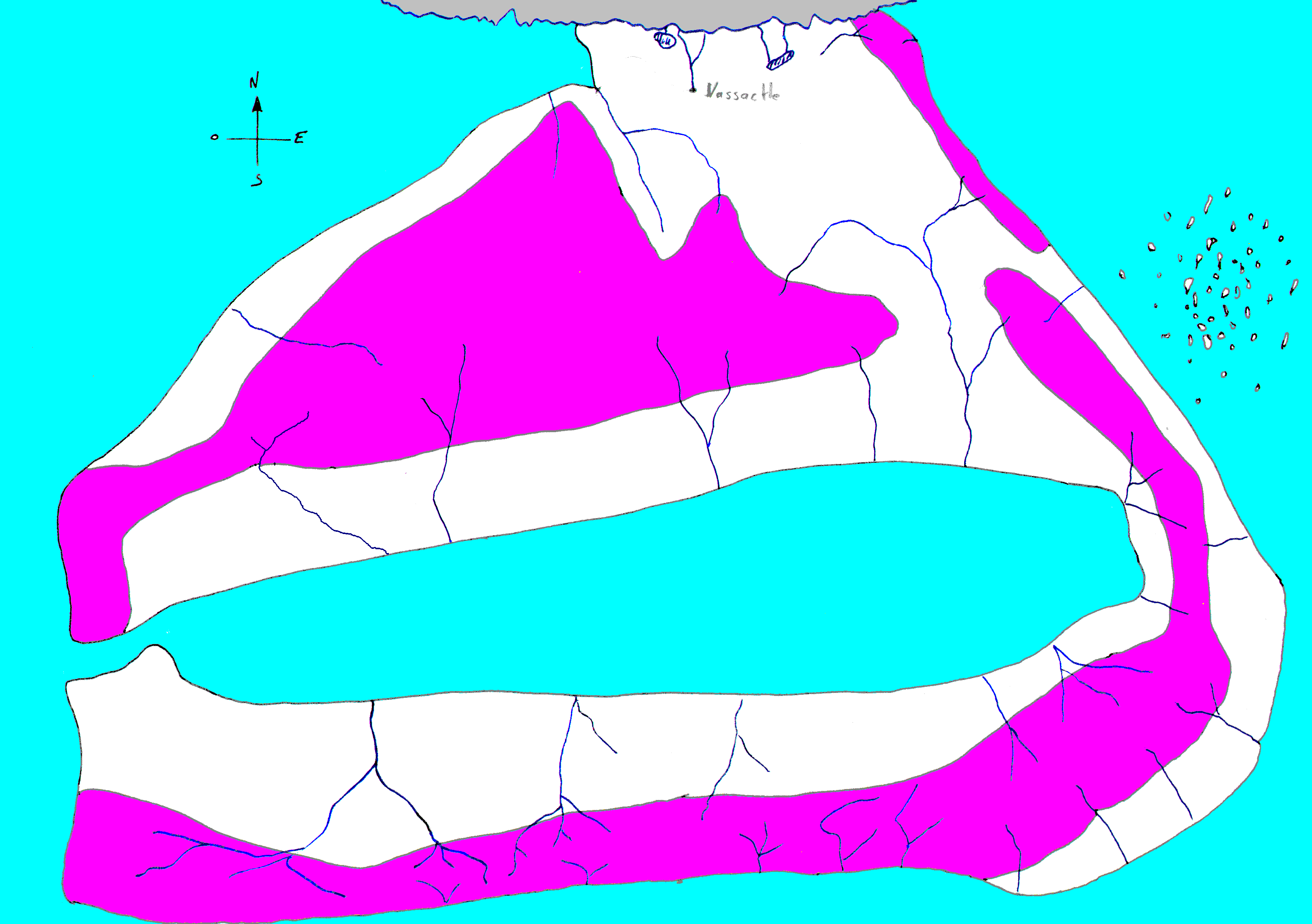 Les quatre puissances firent naître un énorme volcan à l'entrée de la mer intérieure qui envoya ses cendres empoisonnées sur vallée de la Guirande jusqu'à Vassactle. Les cendres tombèrent et anéantirent la civilisation sauf dans les marais de Dondi qui furent sauvés car la philosophie avait été stoppée par leur isolation. Cette éruption fit naître une onde de choc qui inonda la zone Sauvage, appelée à l'époque Mésopotamie, cet événement est relaté dans La Torah avec l'histoire de Noé. Ce volcan diminua aussi l'apport d'eau dans la mer intérieure afin de baisser la prospérité des peuples bordant cette étendue maritime.